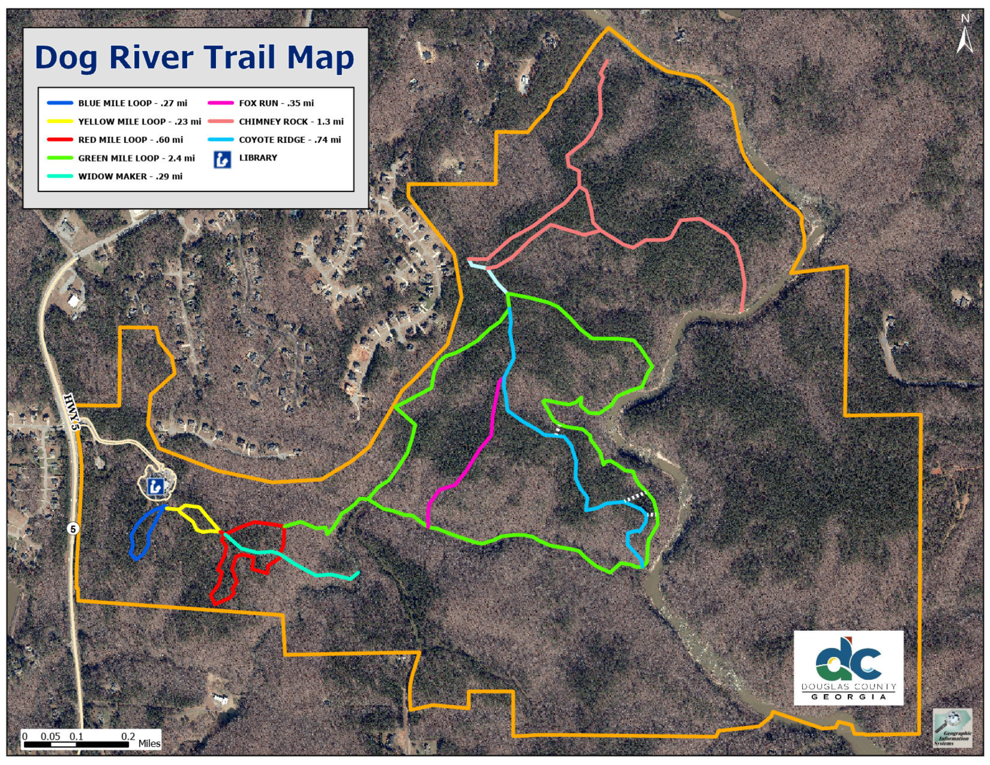 The Dog River Park is located in the southern part of the County off Georgia Highways 166 and 5. Douglas County recently acquired approximately 900 acres of land to protect the quality of its drinking water source (the Dog River), and to provide active and passive recreation for residents.